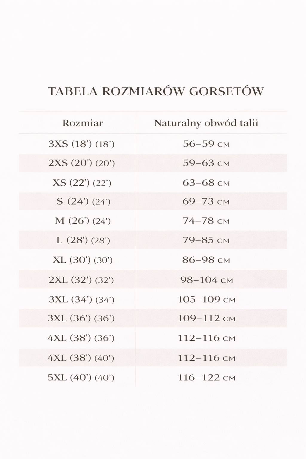 *odchylenia mogą wynosić +/- 1 cm, w zależności od rozmiaru gorsetu